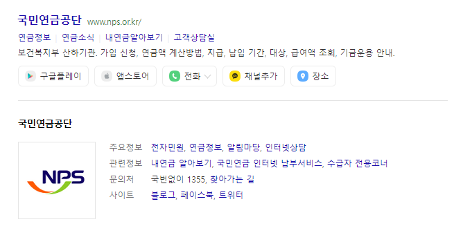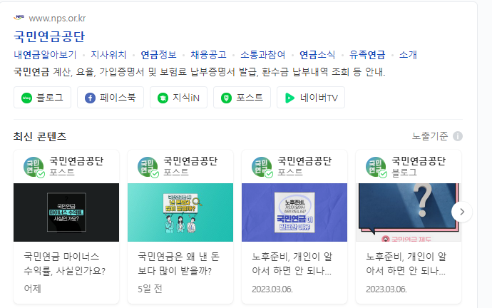 검색 결과 상단의 국민연금공단을 클릭하세요.