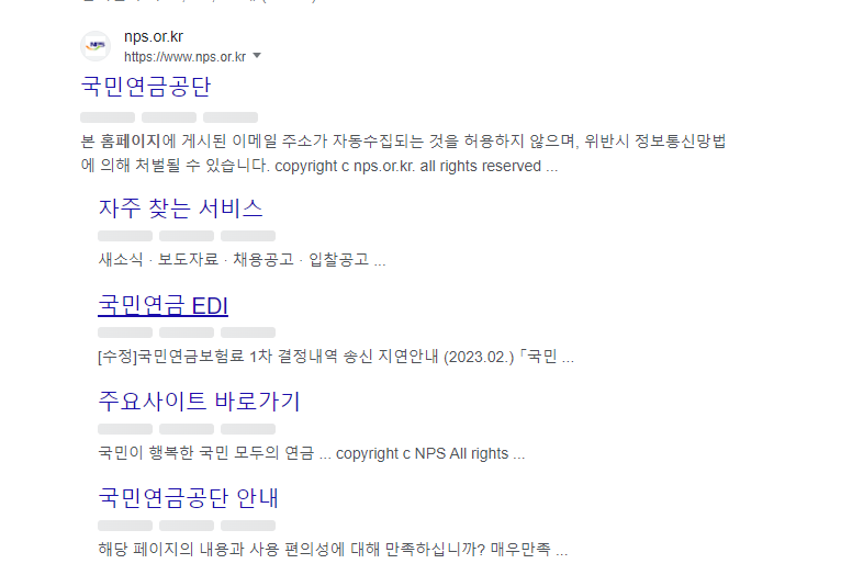 구글에서 국민연금공단 홈페이지 접속