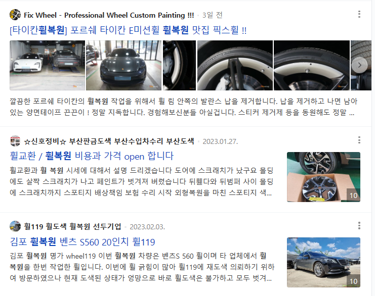 휠 복원 아웃소싱은 상대적으로 비용이 많이 드는 방법이며 앞의 네 가지 방법보다 만족도가 높습니다. 휠을 복원하는 방법에는 두 가지가 있습니다. 1) 상처난 부분만 폴리싱하는 방법과 2) 휠 전체를 폴리싱하는 방법이 있습니다. 1번의 경우 사람 몸에 난 상처처럼 약간의 이질감이 있을 수 있다. 2)의 경우 깨끗하게 복원이 가능하나 휠 전체가 폴리싱 처리되어 있기 때문에 다른 휠과 색상 및 질감의 차이가 있을 수밖에 없습니다. 비용은 커플당 8~10만원 정도이고, 미리 예약하면 하루만에 할 수 있는 가게도 있다. 하지만. 손으로 씻을 때마다 자주 한숨을 쉬어요. 역시 시간은 소중하니까요…