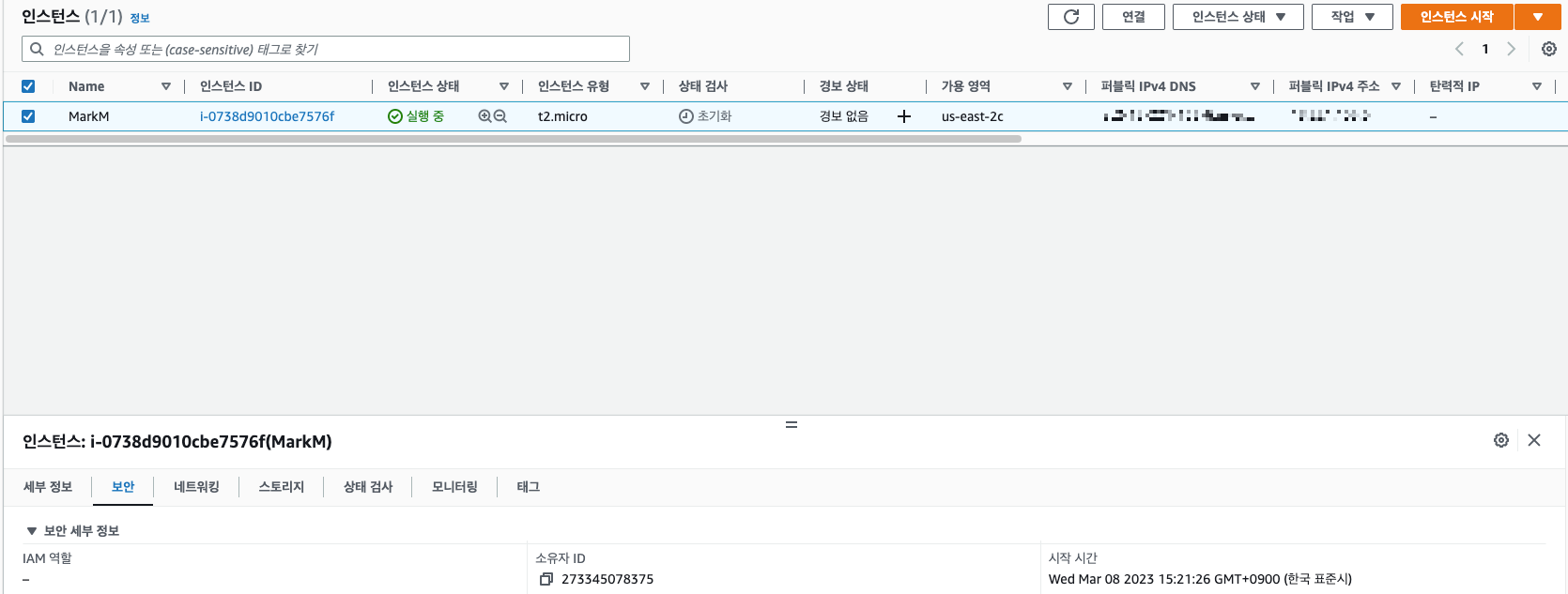AWS 웹사이트에서 인스턴스의 주소를 확인할 수 있습니다.